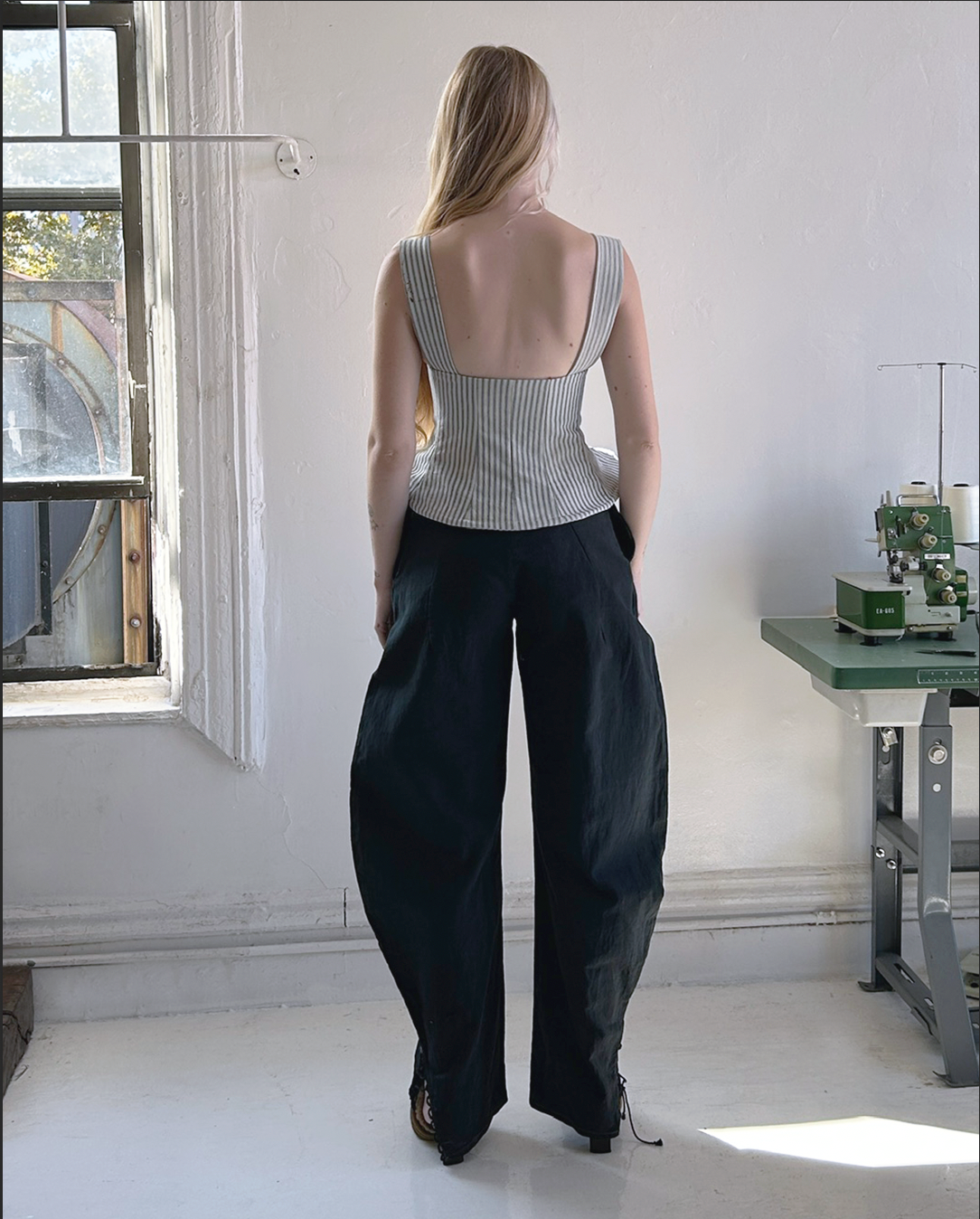 worn with circle legs and godet skirt